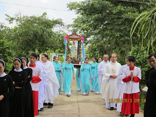 Trước thánh lễ, cộng đoàn cung nghinh tượng Đức Mẹ từ