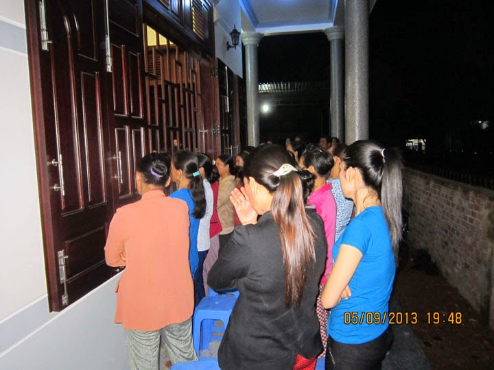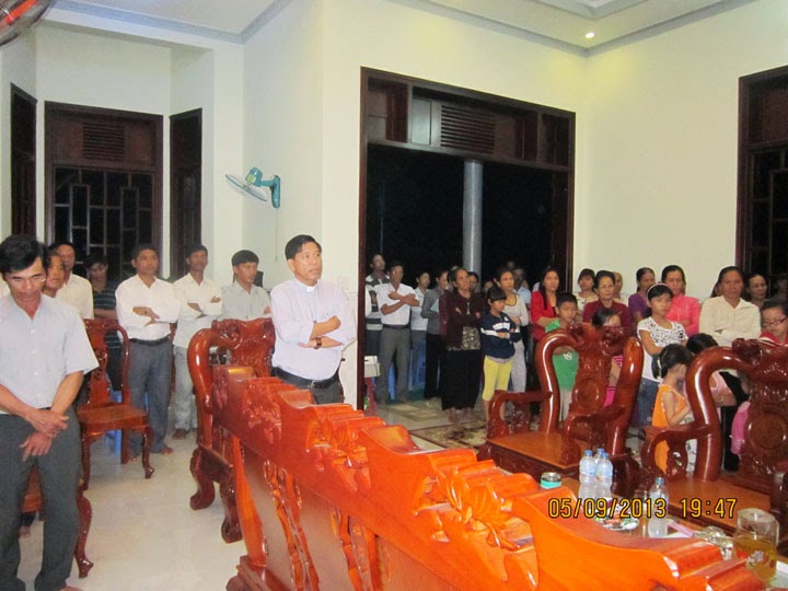 Tối hôm nay lúc 19 h 30 ngày 05 - 9 - 2013. Dưới những cơn mưa rào nặng hạt, nhiều bà con Giáo dân trong Gx Gia an bất chấp mưa gió, tập trung về nhà Anh Giuse Đỗ Văn Phi, thuộc Giáo họ Anrê Kim Thông để cùng nhau đọc giờ Kinh Giáo họ đầu tháng sống Đức Tin, trong năm Đức Tin