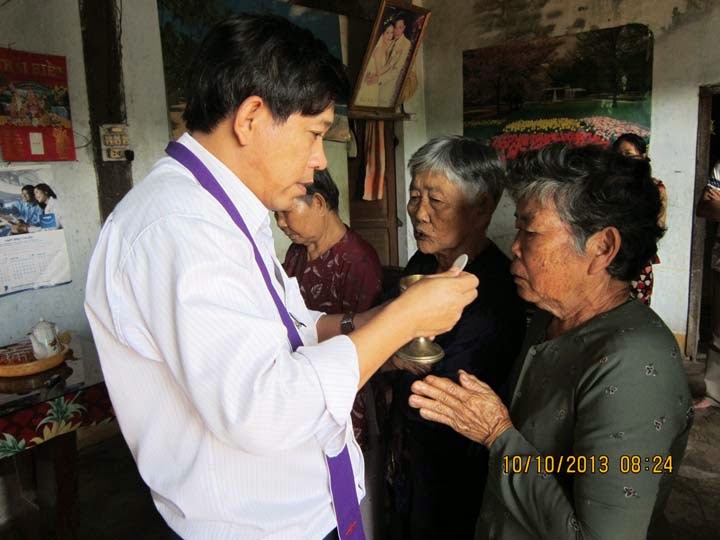 Cha ñeán töøng nhaø beänh nhaân chia seû uûi an vaø Ban caùc Bí Tích giaûi toäi