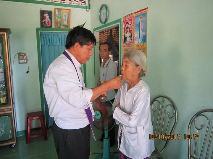 xöù vaø anh em Hoäi Legio cuøng ñoàng haønh ñeán töøng nhaø beänh nhaân giaø